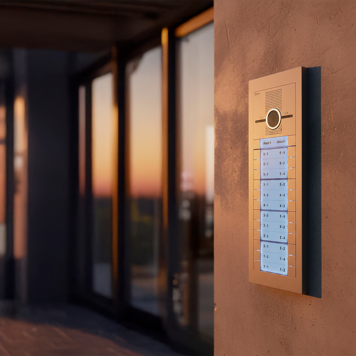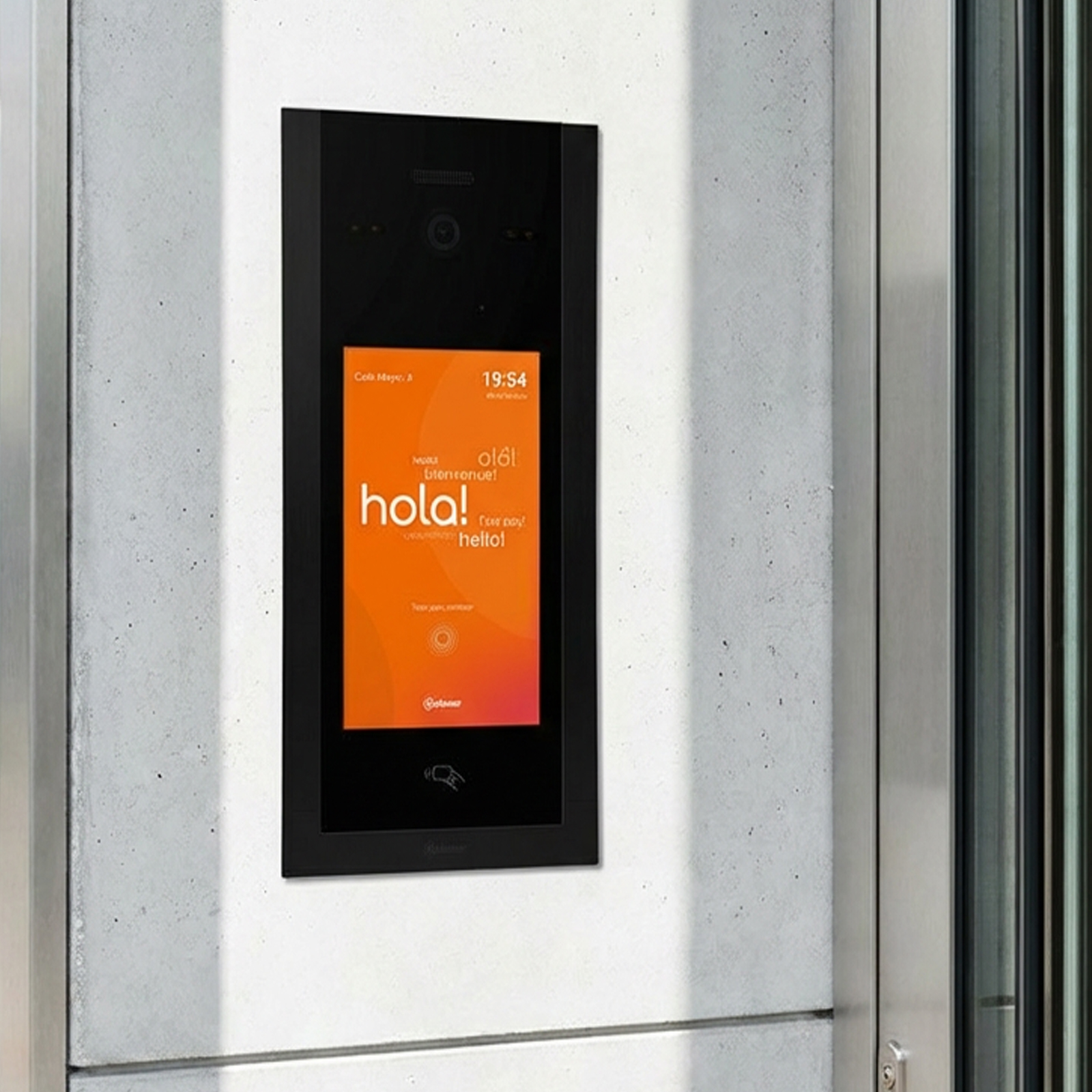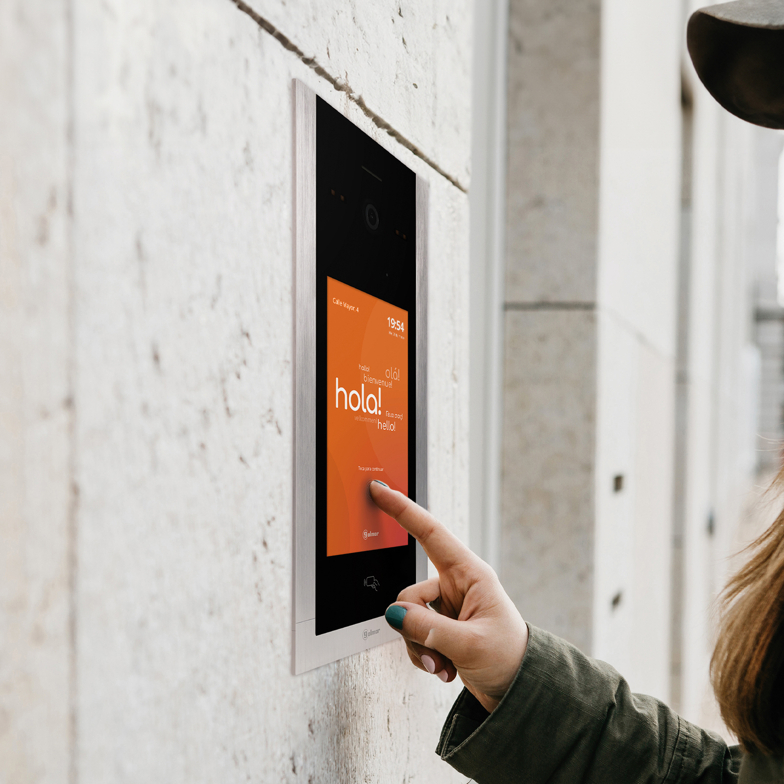 Vanjska jedinica dostupna je u tri izvedbe: aluminij (alu), crna (black) i inox, s modernim i elegantnim dizajnom. Dodir zaslona prati akustična potvrda, a ugrađeni senzor prisutnosti i senzor ambijentalnog osvjetljenja automatski aktiviraju zaslon. Jedinica uključuje i induktivnu petlju za osobe s oštećenjem sluha te RJ-45 priključak za jednostavno programiranje i konfiguraciju sustava.