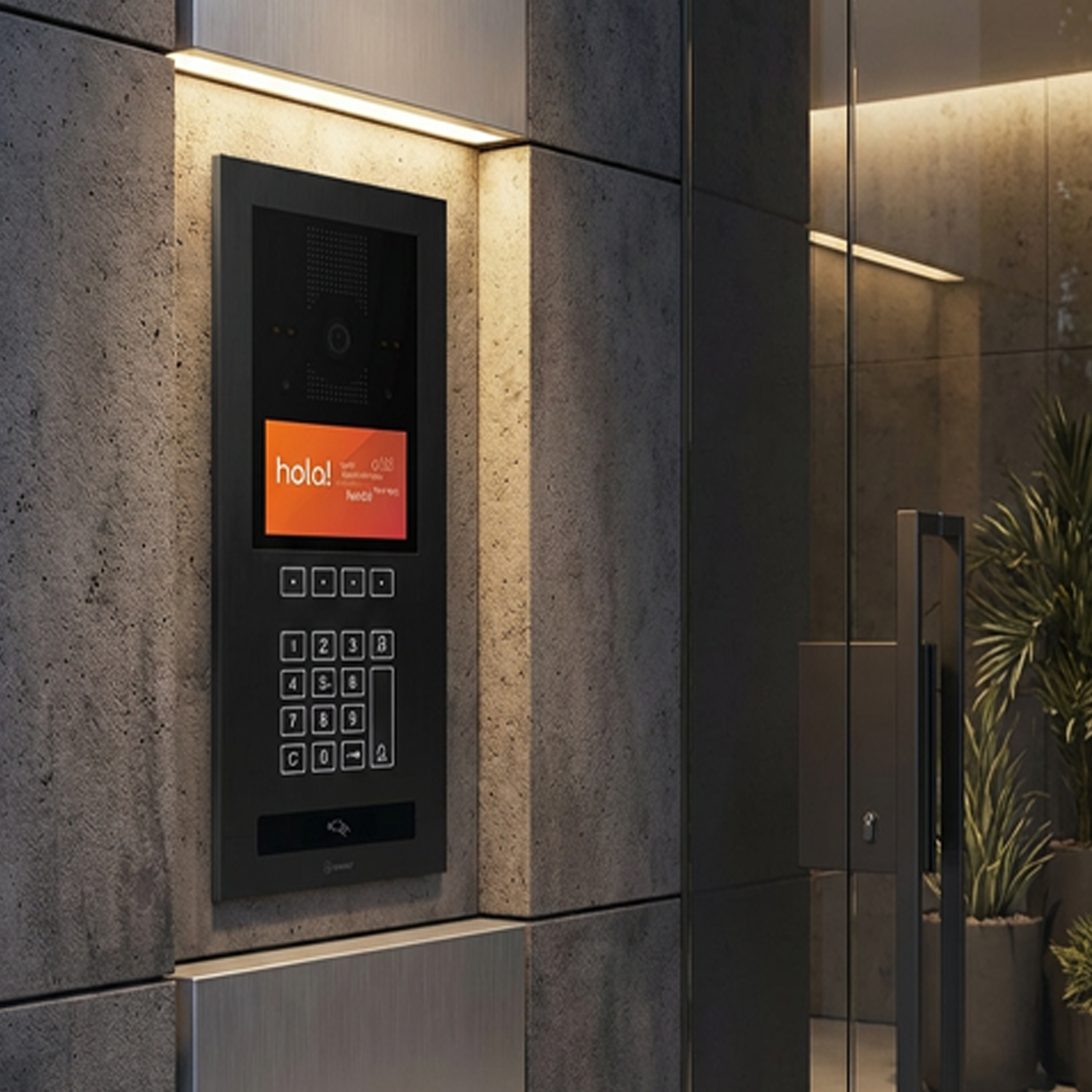 Metalne tipke s pozadinskim osvjetljenjem i akustičnom potvrdom pritiska osiguravaju jednostavno korištenje, a ugrađeni senzor prisutnosti i senzor ambijentalnog svjetla automatski aktiviraju zaslon. Jedinica uključuje i induktivnu petlju za osobe s oštećenjem sluha te RJ-45 priključak za jednostavno programiranje i konfiguraciju sustava.