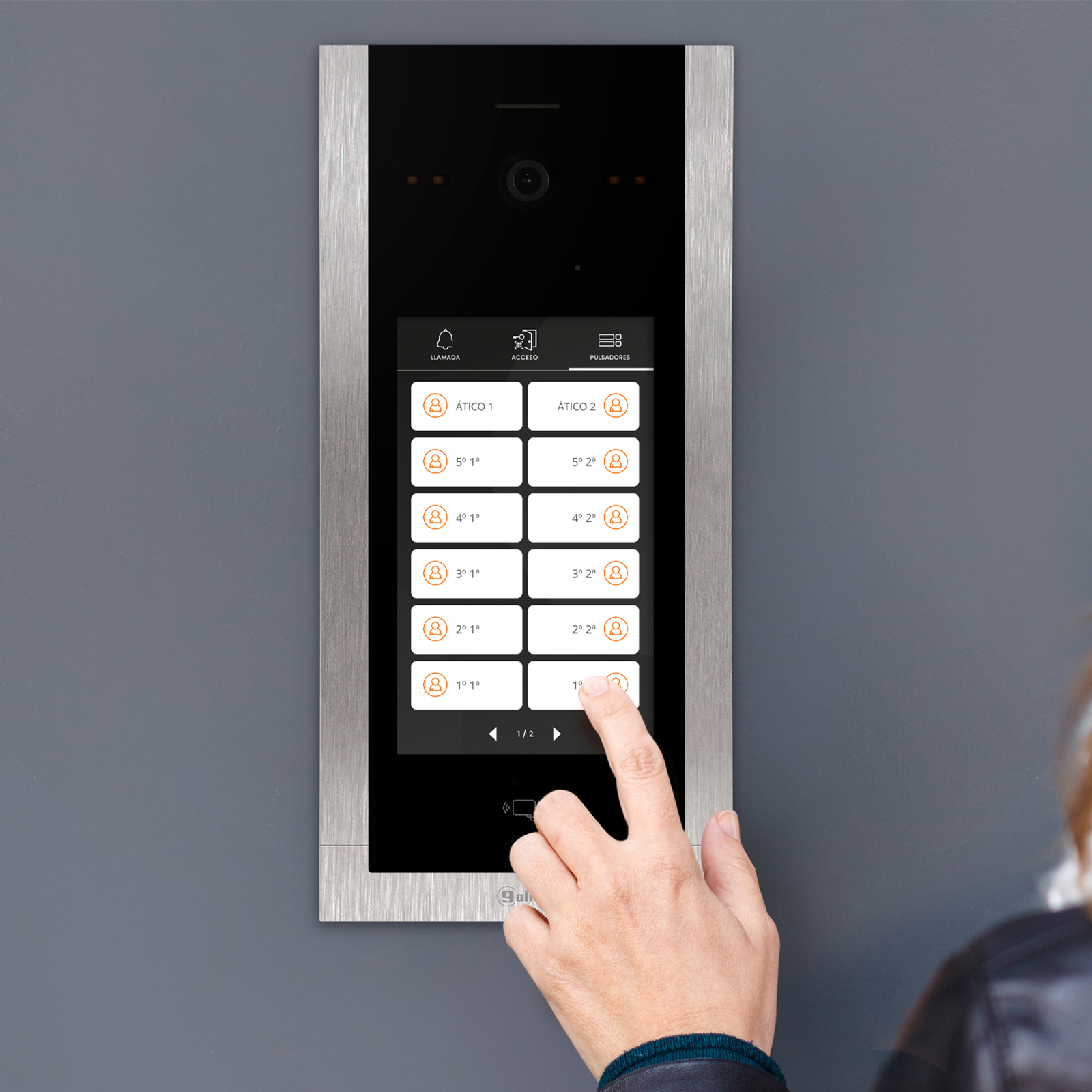 Osim poziva, zaslon omogućuje i kontrolu pristupa putem virtualne numeričke tipkovnice za unos šifre (PIN), kao i otključavanje pomoću ugrađenog NFC čitača kartica, privjesaka ili kompatibilnih mobilnih uređaja (do 2000 korisnika). Prilagodljivo grafičko sučelje omogućuje definiranje prečaca na početnom zaslonu, poput poziva portira, otvaranja vrata ili drugih funkcija.